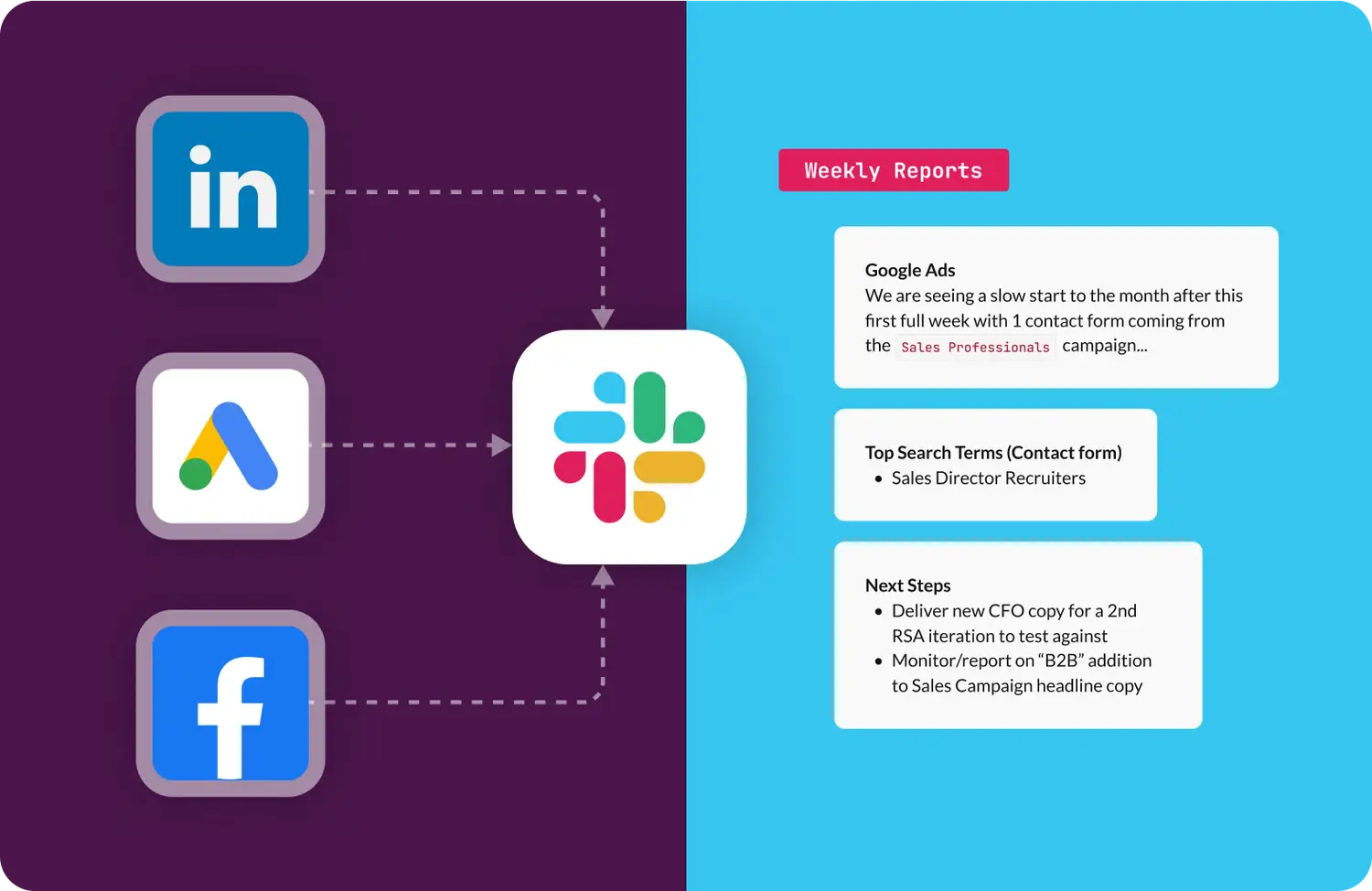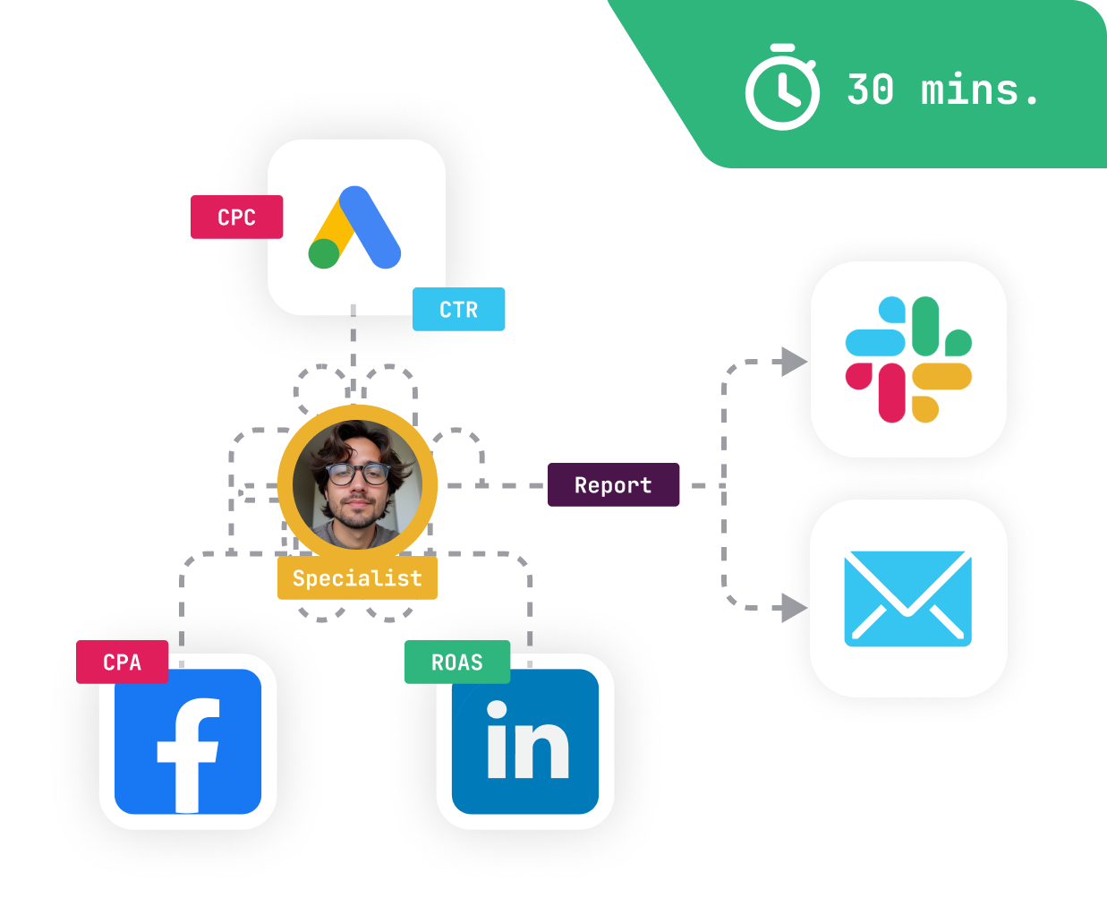 Securely link Google Ads, Facebook Ads, and LinkedIn Ads in seconds.